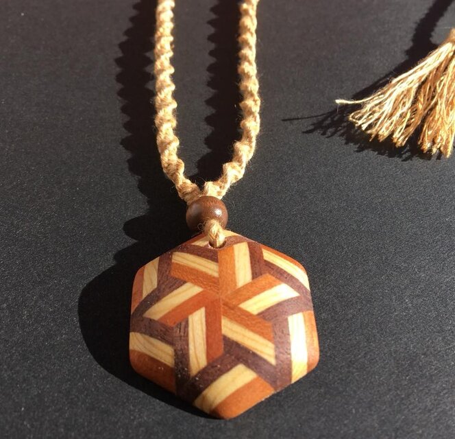 寄木細工の職人さんに麻の葉モチーフのペンダントトップをオーダーで作っていただきました。