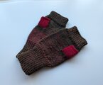 エンジと深い緑のミックス糸で編んだハンドウォーマーです。