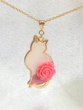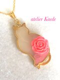 大きなバラをまとったおしゃれ猫のチャームで、夢かわいいネックレスを作りました。