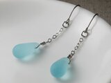チェコガラスのしずくピアス ちょっと長め みずいろ