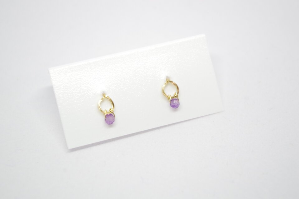 宝石質のアメジストを使った小さなピアス。