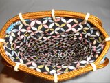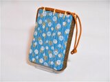 帆布ブルー色地製 ショルダー付き合切袋 信玄袋 巾着 渦巻き