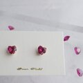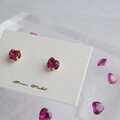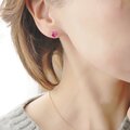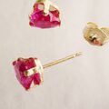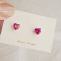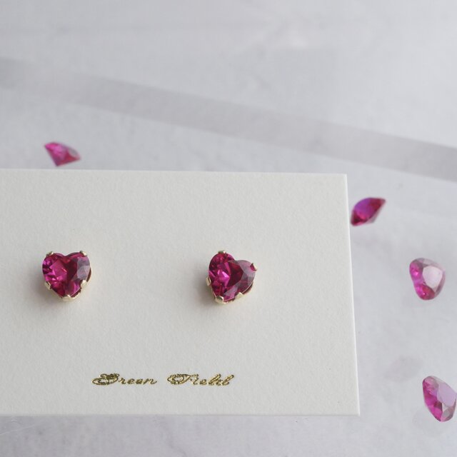 ファセットカットの素敵なハートのルビーが光る一粒ピアス。