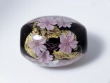 金箔を貼り付けた黒の地に、桜を二重に重ねて咲かせました。