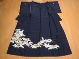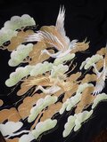 華やかで優美な刺繍の鶴に奏で長れる様な松の模様が素敵なアンティーク着物をほどいて、フォーマルワンピースを作ってみました。
