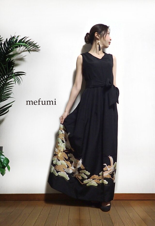 1点物 ✳︎ アンティーク 着物リメイク 鶴松柄 留袖 フォーマル ロングワンピース