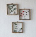 アンティーク調に仕上げた自家製フレームにドライフラワーや小枝をはめこみました。