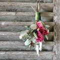 ピンクのケイトウに、ユーカリなどのドライフラワーを束ねた小さなスワッグです。