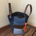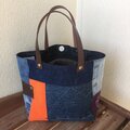 basic☆デニムコラージュトートバッグ Sサイズtribal茶革バッヂ#08