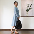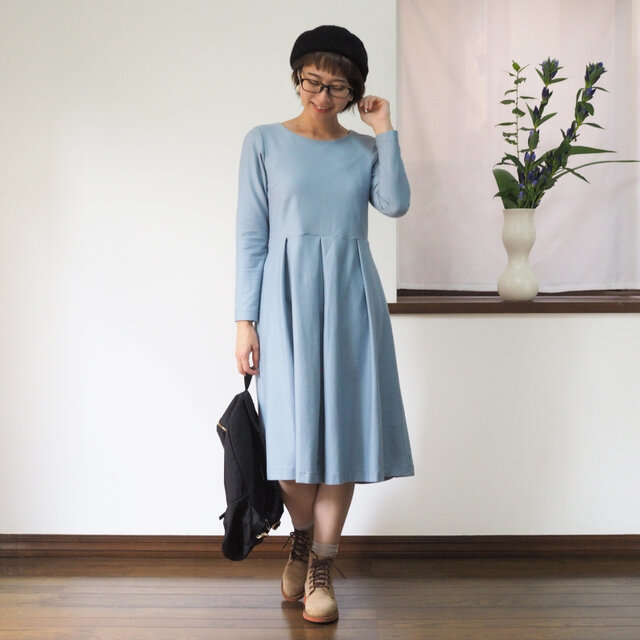 ┗ポケットやファスナー、ボタンなど余計な装飾を一切はぶき、シンプルを極めたワンピースです。その分小物やアクセサリー、着る人を引き立てます。