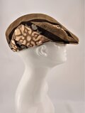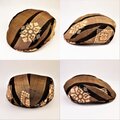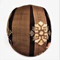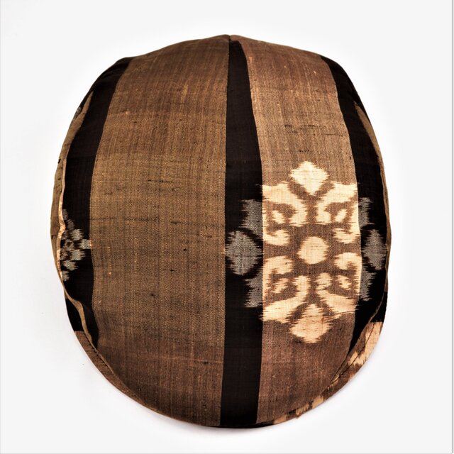 茶色とこげ茶の大きな縞模様に、花菱模様が織り出された紬の着物地から作ったハンチングです。