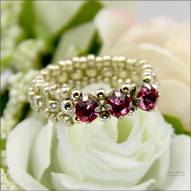 ビーズ,リング,コスチュームジュエリー,ビーズアクセサリー,ビーズアクセ,スワロフスキー,ビーズリング,アクセサリー,キラキラ,パール,ピンク,フィッシャー,シルバー