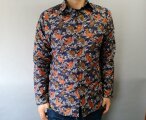 ハリのある綿サテン生地に跳ね鯉模様が描かれた粋なシャツ