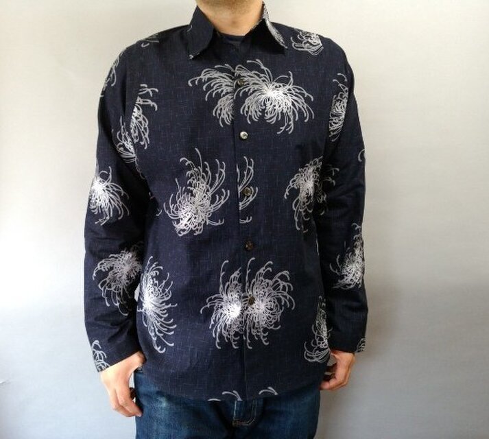 薄手の綿生地に糸菊が描かれた粋なシャツ
