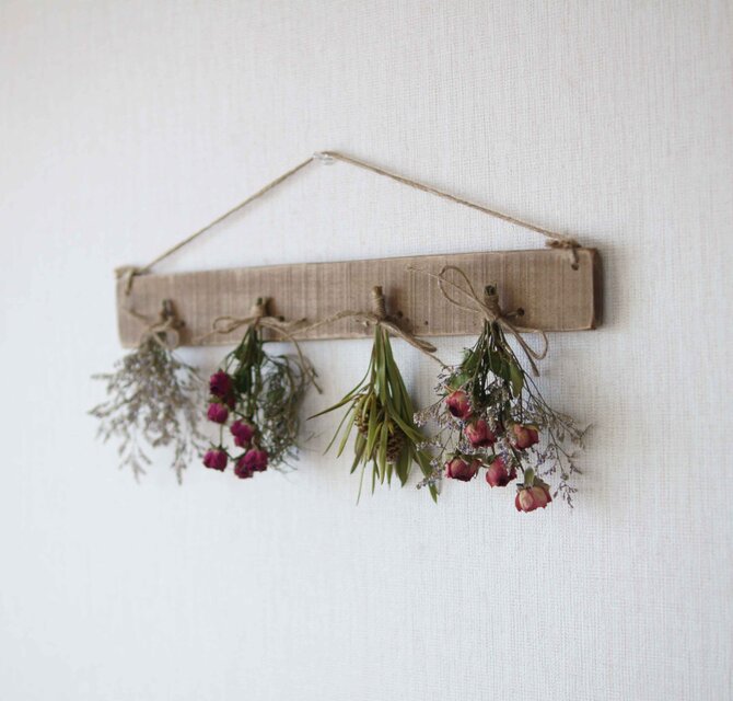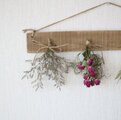 自家製ドライフラワーを古材風に加工した板にセットしました。