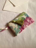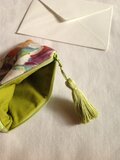きれいな作品ありがとうございました。布の色に合わせたタッセルがかわいいです。▼フラットポーチは、今使っている8インチのタブレットにぴったりの大きさです。こんなかわいいポーチから、大きなタブレットがでてくる意外性?▼取っ手付きしっかりめポーチは、着物を着たときの小バッグにします。浴衣でも使えますね。