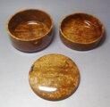 楠玉杢材を用いて制作した 2段菓子重拭き漆仕上げです