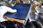 EUヌメ革・ ブックカバー・手染め(ブルー)
