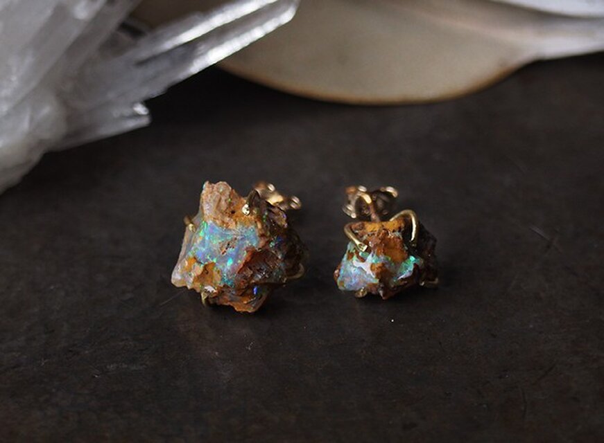 原石のボルダーオパールのピアス w775