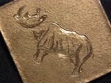 打ち仕事で背景の雰囲気をつくり、彫りでサイを描いています。