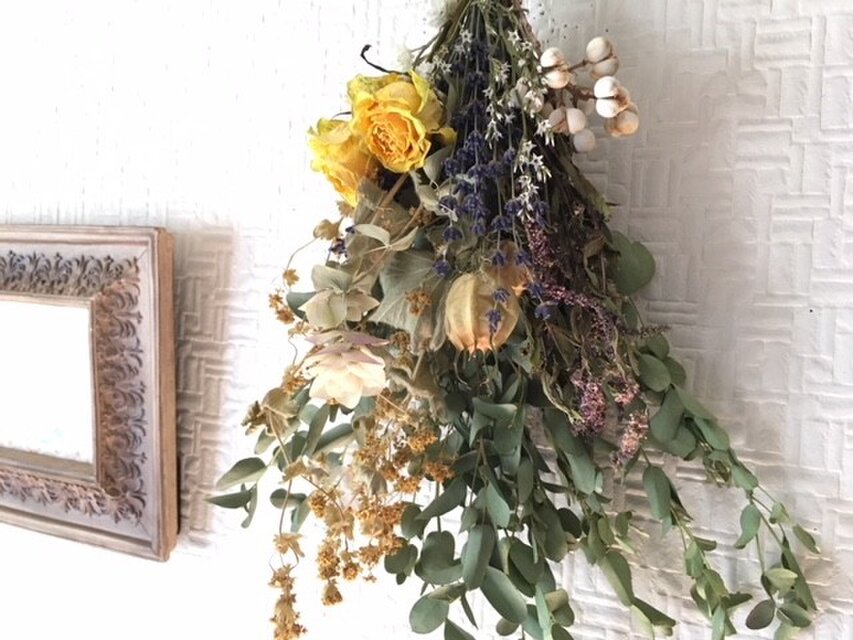 すべてナチュラルなドライフラワーを使用していますので時間とともに退色していきます、それもあわせてお楽しみいただければと思います。