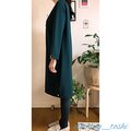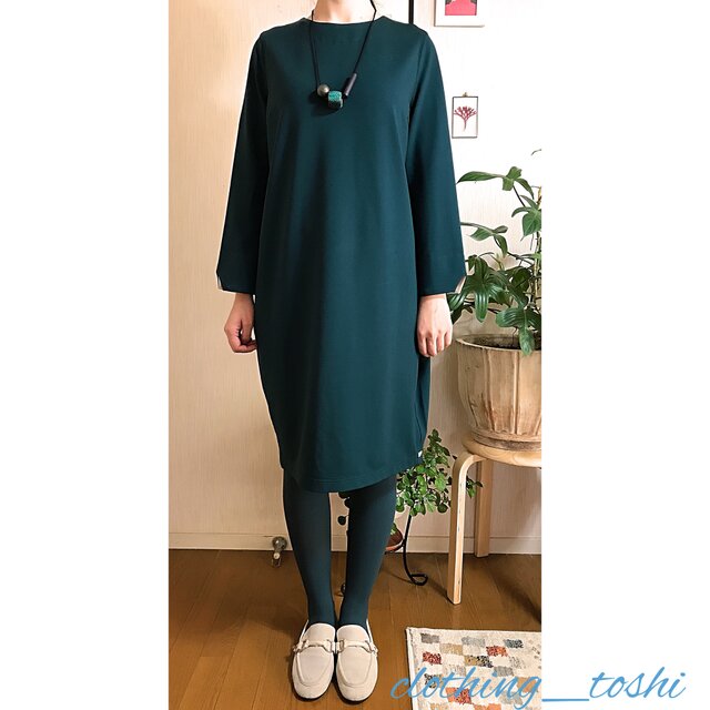 流行色、グリーンネイビーのポンチ生地のワンピースです。