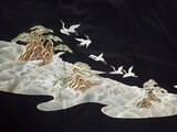 優美な鶴に奏で長れる様な波の模様が素敵なアンティーク着物をほどいて、フォーマルワンピースを作ってみました。