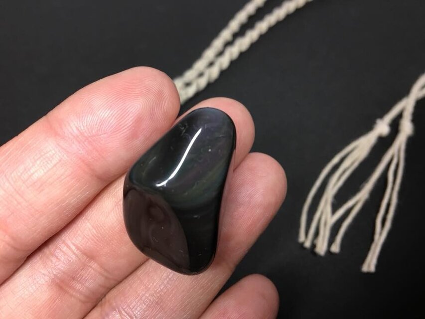レインボーオブシディアン・石出し入れ自由ヘンプネックレス