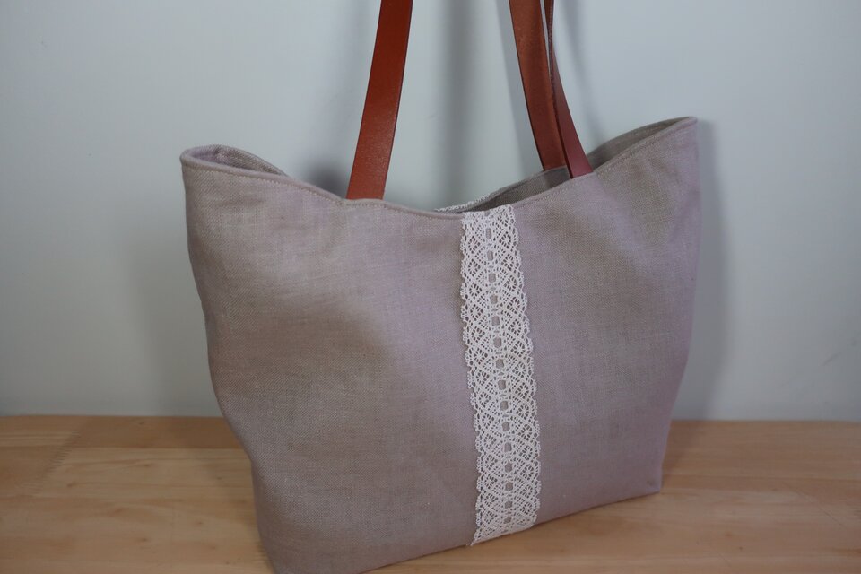 表地は少し厚地の上質ラミーリネンにリネンレースを前後に付けました。