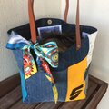 最新作☆デニムコラージュトートバッグ Mサイズ nostalgic茶革リボン17
