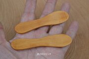 優しい手触り感に仕上げています。イチイはしっかりとした木材なので、アイスにズバリと差し込めます。