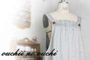 ヨーク部分と肩ひも部分、袖ぐりのバイヤスにリバティタナローンの大人気柄Sleeping Roseをいれています。