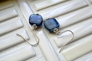 12×12mmの四角いカイヤナイトを1粒下げたピアスです。