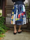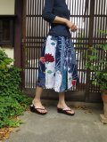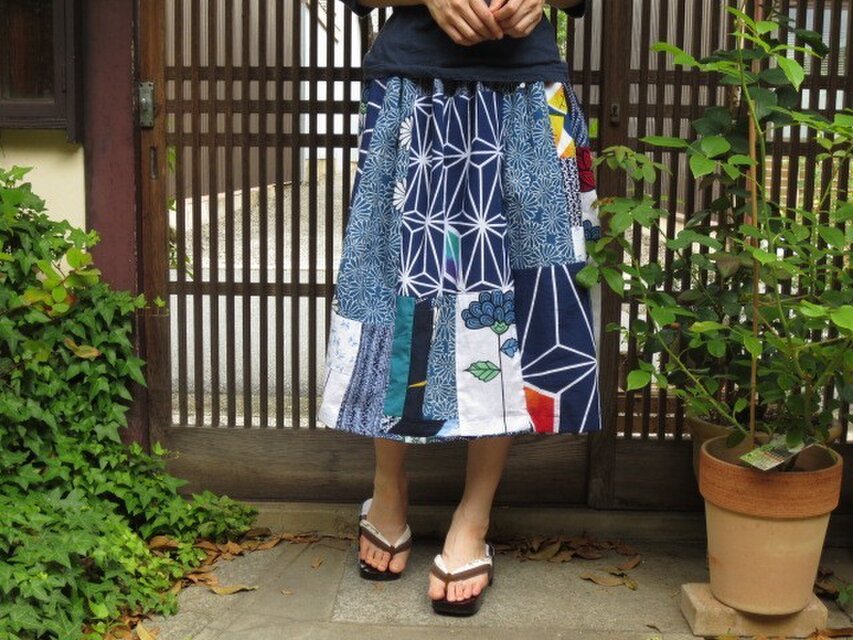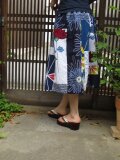 浴衣リメイク☆藍に白…色々パッチで可愛いスカート74cm丈