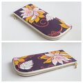 外側はダークブラウンをベースに白とピンクとマスタード色の大きな花が大胆に描かれたArt Gallery fabrics のUSAコットンを使用しています。