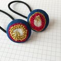 刺繍くるみボタンヘアゴム【mebae 黄色】