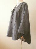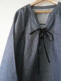 ★en-enコットンリネン・デニム紐結びプルオーバー ・ヴィンテージブルー