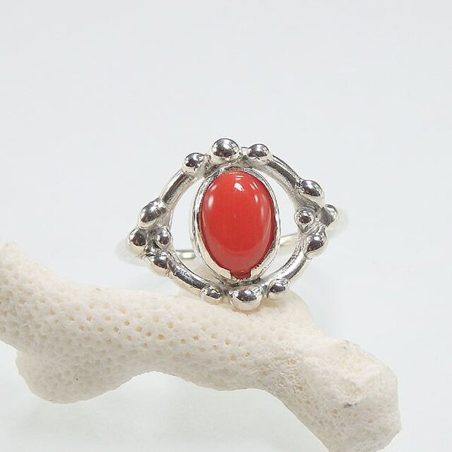 ~海が育て上げた赤い宝石~ 珊瑚のサークルドットリング 10.5号
