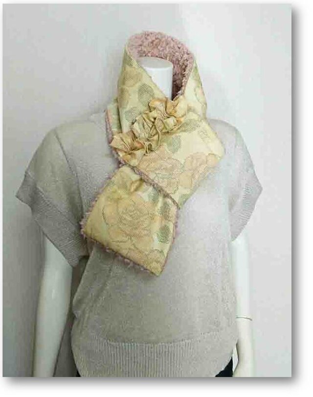 大島の裏に黒のモコモコボアを張った、とても暖かいマフラーです。