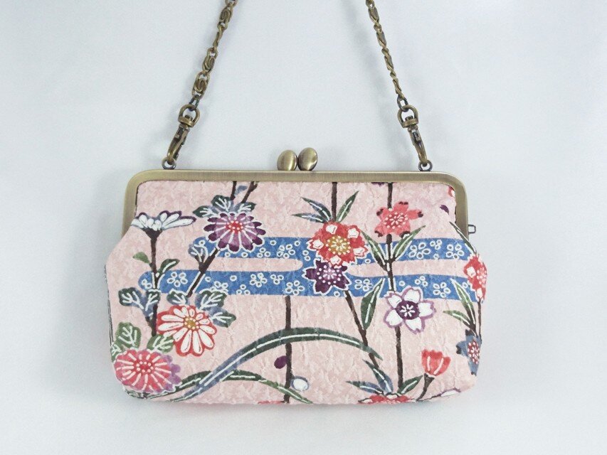 口金は着物の上品さを引き立てるアンティークゴールドを合わせました。