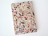 リバティの人気生地、トゥルーリー・スクランプシャス Truly Scrumptious(ベージュ)とハーフリネンの生地でA5サイズのブックカバーを作りました。