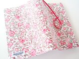 リバティの人気生地、フェリシテ Felicite(レッドピンク)とハーフリネンの生地でA5サイズのブックカバーを作りました。