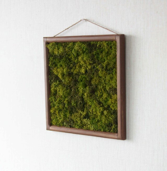 アンティーク調に仕上げた自家製フレームにプリザーブドモスを貼り付けました。