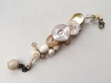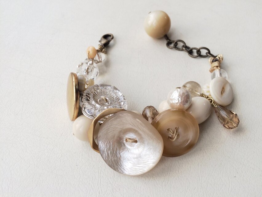 シルクのような光沢のあるページュのボタンを中央に配し、同系色のベージュ系パーツを集めました。