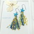 ターコイズカラーのヒトデチャームと合わせてデニムタッセルピアスにしました。