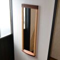 木枠フレームの姿見です。玄関や階段の踊り場、リビングや寝室など、場所を選ばずどこにでも掛けられる大きさです。