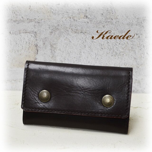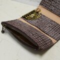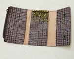 焦げ茶の牛革、内側はチェック模様の豚革で開いた時にレトロな雰囲気にしてみました。
