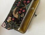 ウイリアムモリスの人気柄 いちご泥棒(ブラック)で作りましたがま口ふっくらポーチです