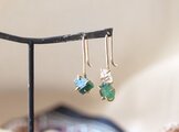 素材:エメラルド(ザンビア産)・ダイヤモンドクォーツ(パキスタン産)・K14ゴールドフィルド(ピアス針)・真鍮