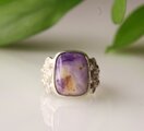 美しいバイオレットとホワイトのマーブル模様、ところどころにオレンジカラーも見られる大ぶりの石。